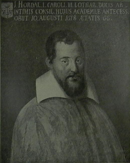 Jean I HORDAL s’appelle Jean GEORGE dit HORDAL comme le démontre sa nomination en tant que lecteur ordinaire de l’université de Pont-à-Mousson (Archives Départementales de Meurthe-et-Moselle. D 54, copie B 56 f° 228, 2 Mi 537) :