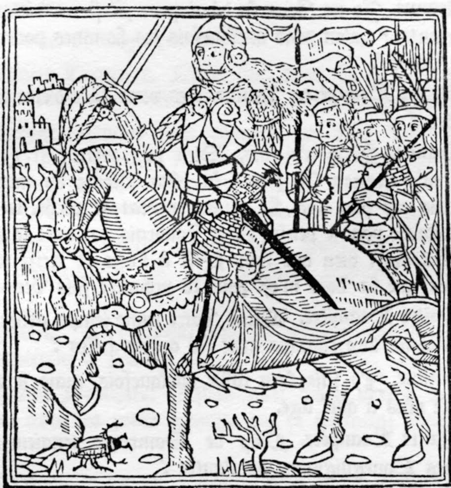 Nous Wichart Martin de Toul et Joffroy dit Lemoyne de Verrières, faisons savoir à tous, que comme pour raison de ce que Guiot Poingnant, de Montigny le Roy, avoit fait par ses lettres ouvertes, plusieurs requestes, à noble homme messire Henry d’Ogevillers, chevalier, et aussy, aux manans et habitans des villes de Greux et de Dompremy sur Meuse, ses hommes et subgiez, pour cause et raison de ce qu’il disoit et maintenoit, que environ, l’an mil iiije et xxiij derrans passé, il avoit rapplegie les habitans desdictes villes, a leur priere et requeste envers mon Damisoul de Commarcey, de la somme de unze vins escus d’or, et promis de l’en desdommagier, et rendre toutes perdes et dommages. Or disoit ainsi ledit Guiot, par ce que la dicte somme de xjxx escus d’or n’avoit pas esté paiée au jour, il en avoit euz et soustenuz plusieurs gros et griefz dommages, tant par ce qu’il s’estoit departis dudit Commarcey et s’en venir demourer audit Vaucoulour, pour doubte de la dicte plegerre, comme pour ce que ses chevaulx en avoient esté vendus et butinez et environ xxiiij voitures de foing, et iiijxx voitures de bois, avec plusieurs autres biens meubles perdus, butinez et dessippez, pour lesquelles perdes, interestz et dommages il demanda et demande jusques à la somme de vjxx escus d’or. Et sur ce journée en fut prinse et acceptée par lesdictes parties, au lieu de Vaucoulour, par devant noble homme Robert sgr de Baudrecourt et de Bloise, cappitaine dudit Vaucoulour, au dimenche xvje jour de mars, l’an mil CCCC et vint six derrans passé. Auquel jour et lieu lesdictes parties comparans pardevant ledit Robert : c’est assavoir ledit Guiot Poingnant en personne demandeur d’une part ; et ledit messire Henry d’Ogevillers, ensemble lesdicts manans et habitans de Greux et de Dompremy, ses hommes et subgiez, comparans par venerable et discrecte personne messire Jaques Flament prebtre, Jehan Morel de Greux, et Jaquot d’Ars dudit Dompremy, leurs procureurs, souffisamment fondez de procuration dont il nous a deuement apparu, deffendeurs d’autre part. Par lequel Guiot demandeur fut renfreschie sa demande, et ramenée à fait le contenu en ses dictes lettres de requeste. A quoy fut respondu, et deffendu au contraire par lesdicis deffendeurs, on non que dessus, tendans affin d’absolucion, disant qu’ilz confessoient bien que Jehan Aubert de Champougney et ledit Guiot Poingnant, pour eulx et àleur requeste, avoient esté ployges des dits xjxx escus d’or envers mon dit Damisoul de Commarcey, mais ilz avoient tant fait et paié, que de la somme dessus dicte avoient bonnes lettres de quictance, et par icelles, eulx et leurs diz pleges, en demouroient bien juictes par devers mon dit Damisoul. Parquoy en devoient demourer bien quictes et absolz de la peticion et demande que leur en faisoit ledit Guiot, et que aucun dommage ou interest en eust eu icelluy Guiot, pour cause de ladicte plegerie, lui mectoient en non. Par lequel Guiot fut offert de monstrer et prouver son cas, et pour ce faire fusmes presens nommez et esleuz commissaires et arbitres par lesdictes parties, pardevant ledit Robert, et promis par la foy et serment de leurs corps, et soubz l’obligacion et ypotheque de tous leurs biens et des biens de leurs maistres, de tenir ferme, estable et agreable à tousjours, sans jamais aler au contraire, tout ce que par nous en seroit dit, jugé, sentencié, ordonné et arbitré. Auquel Guiot demandeur, pour monstrer et prouver son fait, lui ordonnasmes de admener les tesmoins pardevant nous dont il se vouldroit aidier, dedens le dimenche ensuivant, et à l’octave après ensuivant, penultime jour dudit mois de mars. Nous, bien conseillé sur ce pour oir droit se bonnement faire se povoit, assignasmes jour ausdictes parties, lequel Guiot demandeur durant sa production, nous a produit et administré deux tesmoins, c’est assavoir Didier de Ruppes, filz Dommenget dit Sauveur, et Jehan de Boisellot, et leurs depositions mises et redigées par escript. Auquel penultime jour dudit mois de mars, lesdictes parties comparans comme dessus par devant nous, après ce que ledit Guiot s’est restraint de admener plus nulz tesmoins, et que par les deffendeurs ont esté baillé reprouches contre lesdits tesmoins et salvacions au contraire par ledit demandeur, pour iceulx tesmoins demourer et valoir en son dit procès, et mesmement aussi que iceulx deffendeurs nous ont monstrées et exhibées par maniere de preuve, lesdictes lettres de quictance seellées du seel de mon dit Damisoul, par lesquelles il se tient pour bien contens et paiez desdits xjxx escus d’or, et en quicte lesdits habitans ensemble lesdits Guiot, Jehan Aubert, et tous autres à qui il appartient, donné en date le viije jour de décembre l’an mil iiije et xxiij, nous n’avons peu estre conseillé si briesvement et donner nostre puissance. Et sur ce encores preinsmes noz advis du consentement desdictes parties jusques au lendemain ensuivant, dernier jour dudit mois de mars, combien que lesdits deffendeurs ont esté tousjours prestz de renouveller nostre puissance jusques à tel jour qu’il nous plairoit, et que nous puissiens estre bien conseillé, et ledit Guiot, demandeur, de ceste en a esté reffusant, disant que nostre puissance ne renouvelleroit point, et que se bon nous sembloit que nous en rendissiens nostre sentence, ou les messiens en tel estat comme il estoit par avant. Et pour ce veu les offres desdits deffendeurs, par lesquelles estoient pretz de renouveller nostre puissance jusques ad ce que nous fussions bien conseillez sur ce, et oyr nostre appoinctement et sentence arbitraire, de quoy ledit demandeur a esté reffusant, disant que autre chose n’en feroit. Et pour ce iceulx deffendeurs veans que icellui demandeur ne le faisoit que pour les vexer et traveiller, de toutes les choses dessus dictes et de chacune d’icelles, pour leur valoir en temps et en lieu ce que raison devra, nous en ont requis no